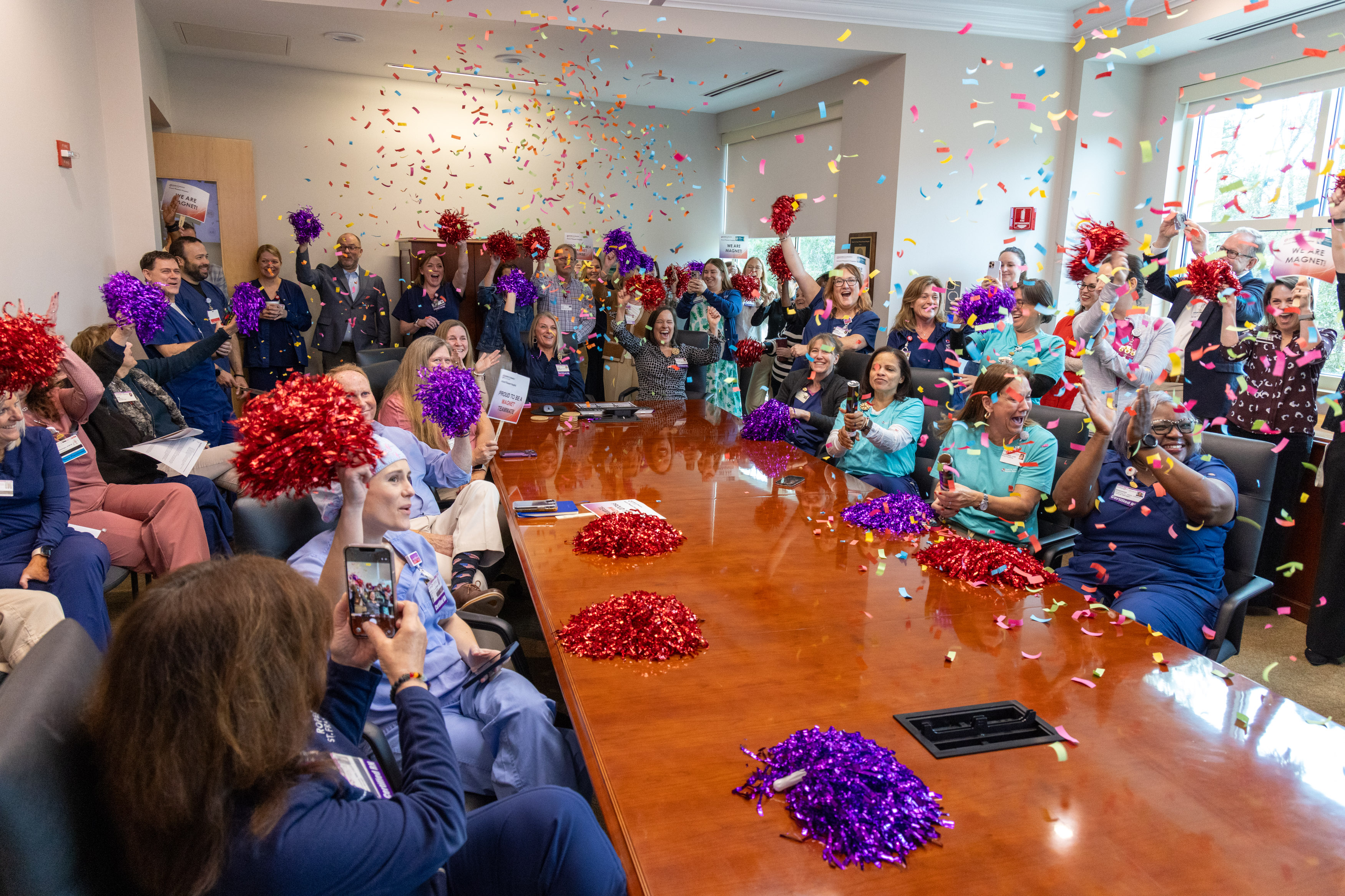 Cheers swelled from those gathered in the boardroom. Hugs were exchanged, confetti popped and pom poms shook as colleagues congratulated one another on the milestone achievement.